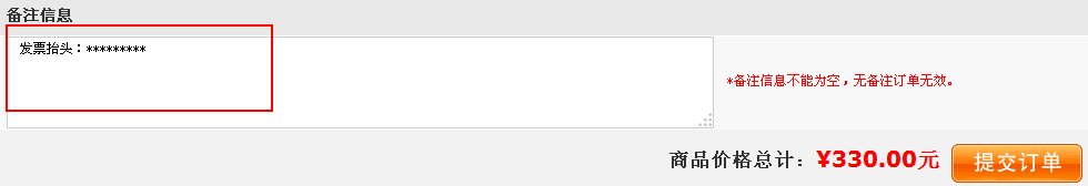(五)、在購物車(chē)確認訂單頁(yè)面,填寫(xiě)備注信息(如發(fā)票抬頭等信息);
