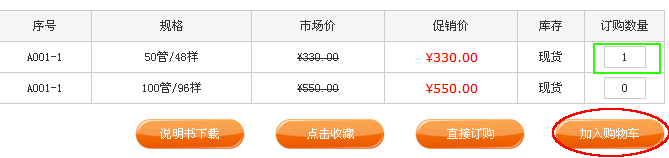(四)、將需要訂購的產(chǎn)品輸入訂購數量后,點(diǎn)擊加入購物車(chē);